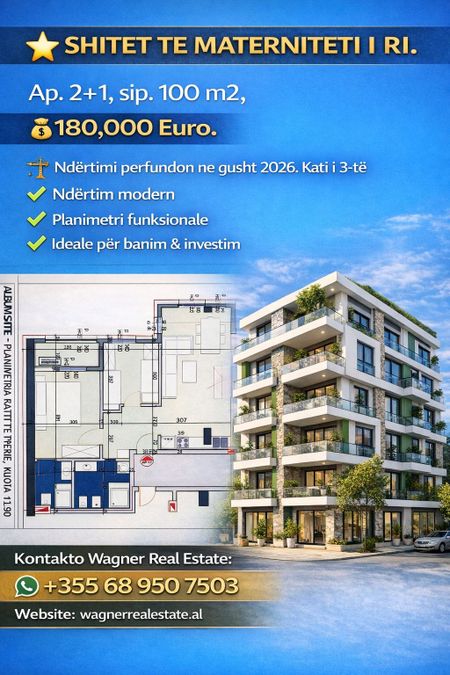 ⭐ SHITEN TE MATERNITETI I RI. ✅Ap.2+1, sip.100 m2, 💶180,000 Euro. Perfundon ne gusht 2026.